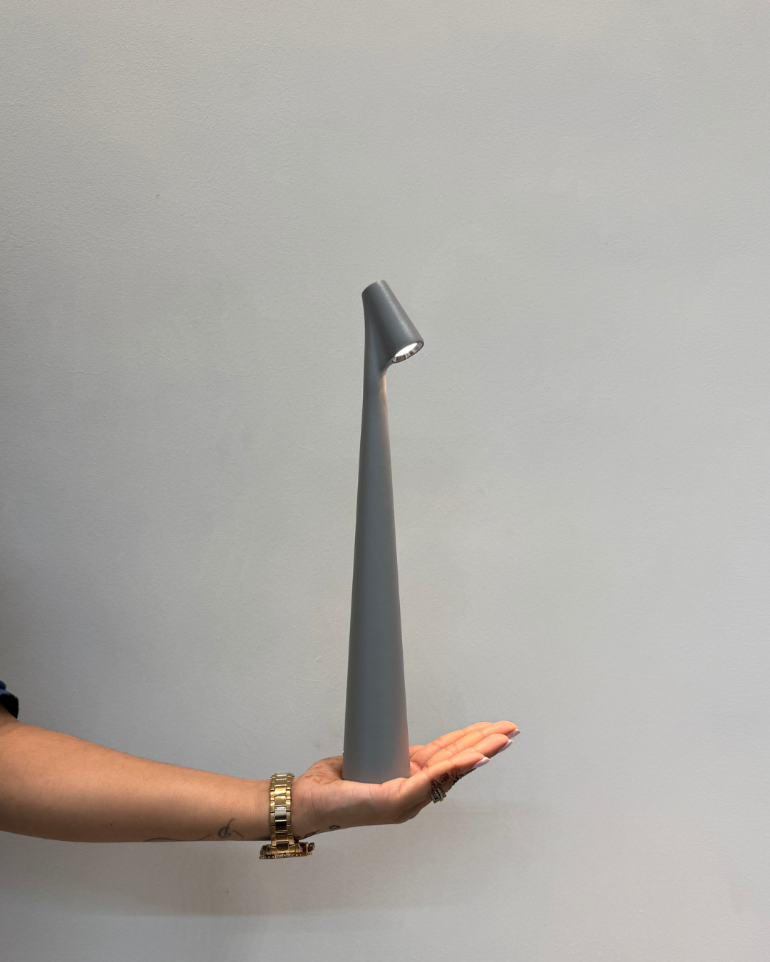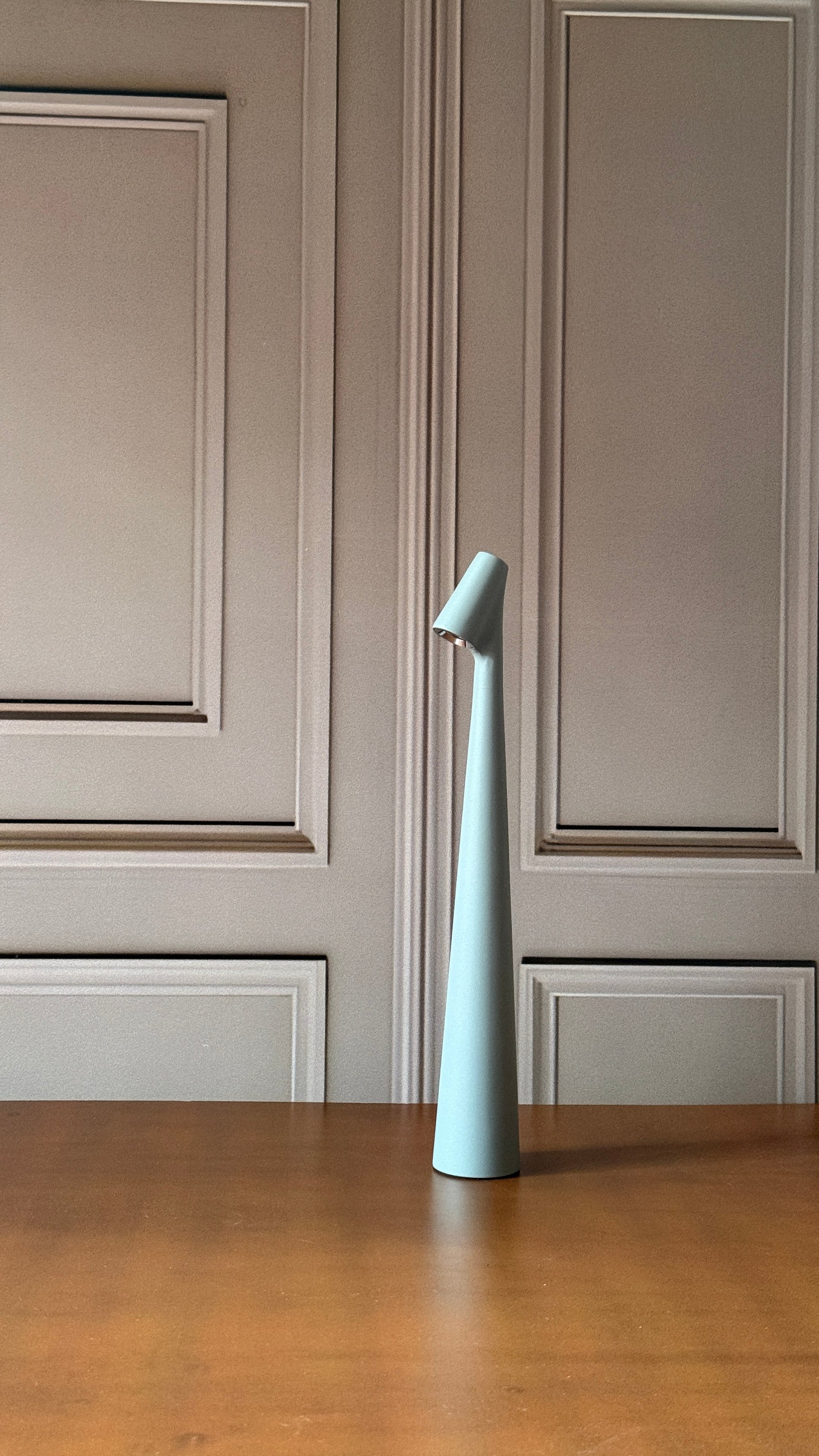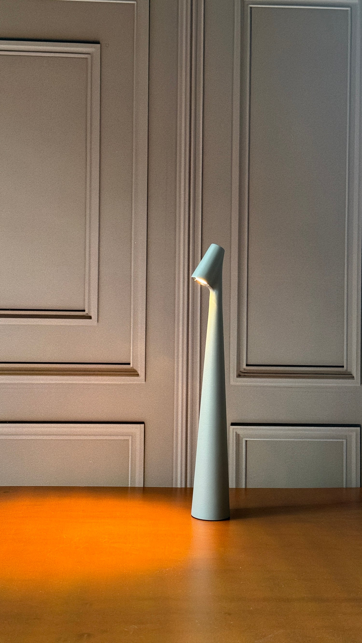 Featuring a refined conical stem and a gently angled head, this lamp radiates elegance. Its soft, glare-free illumination enhances any surface, merging aesthetics with functionality.